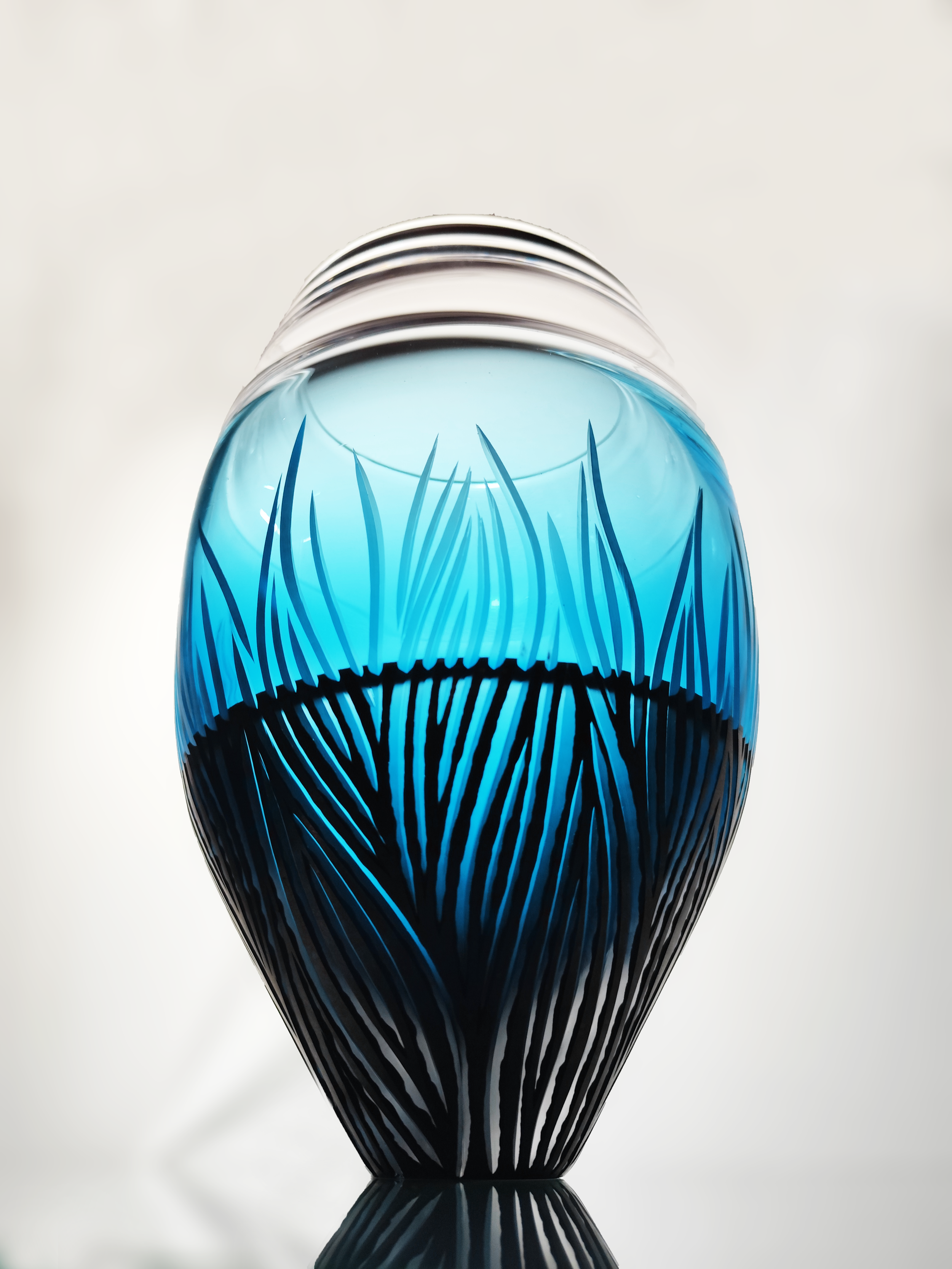 Verre soufflé travaillé et gravé à froid, 32x18cm